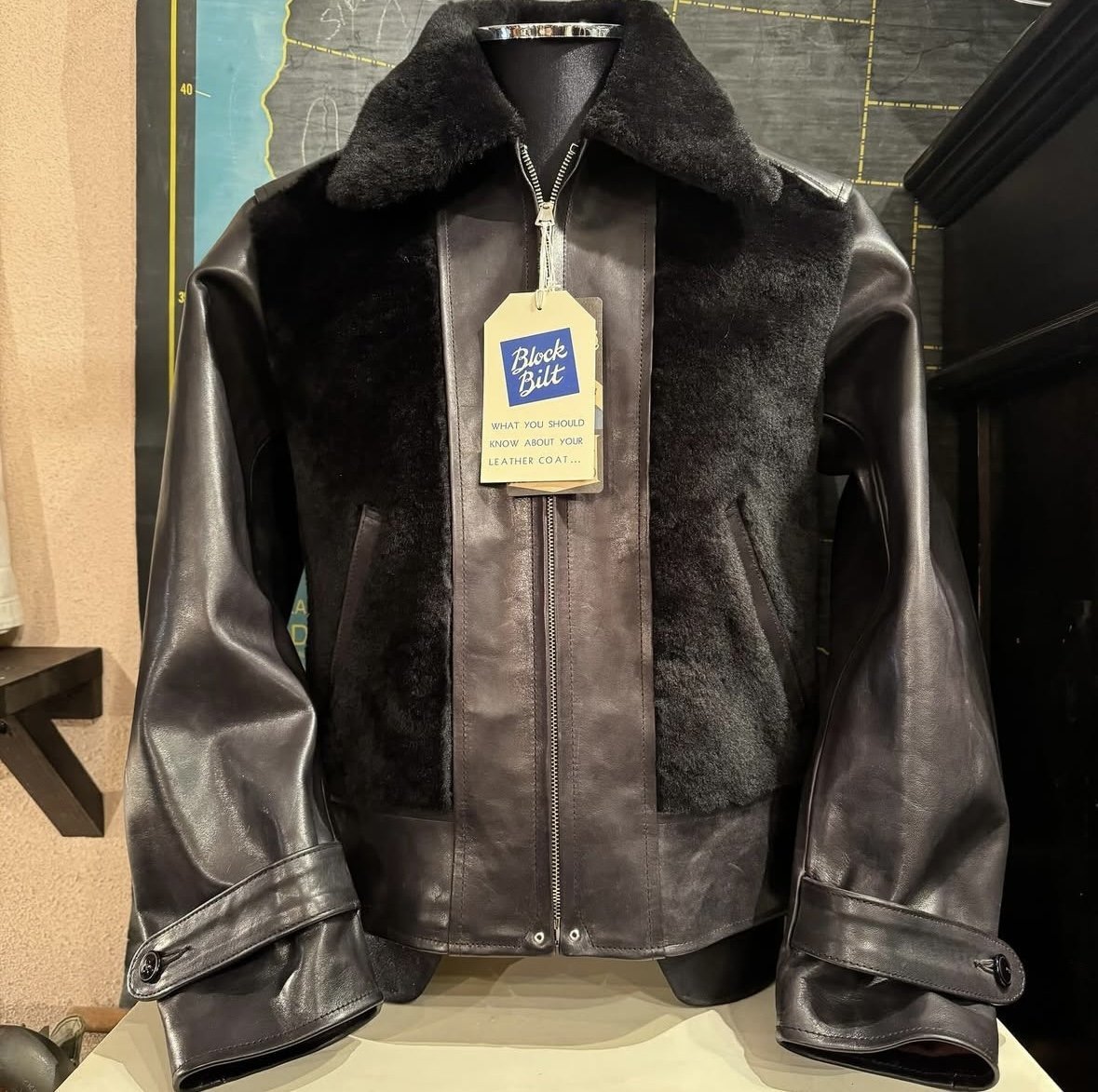 | コンディション | 30’sのBlockBiltグリズリーレザージャケットを細部まで分析し再現した一着 30’s BlockBilt Grizzly Jacket LOT1736です。 やや長めの襟やショルダー部分のムートン切り替え袖口のアジャスターなどが目を引き、 ウエストベルトが付かないのがBlockBiltの特徴的なディテール。 マリアム社のフルベジタブルタンニングの馬革とシープムートンを選定しパラフィンとカゼインを用い仕上げを施し 縫製、付属等一切妥協する事なく徹底的に拘った渾身のグリズリージャケットです。 |