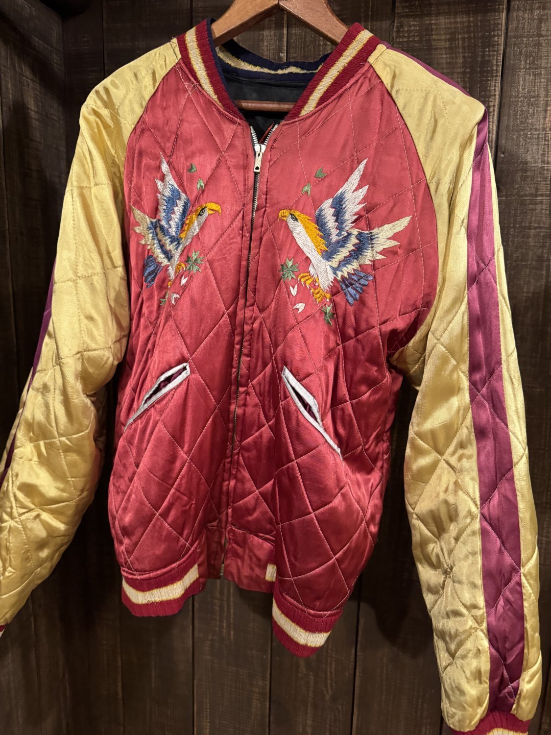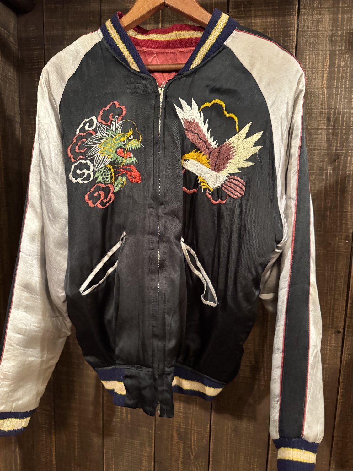 | コンディション | 50'sのサテンスカジャンになります。 A面はブラックベースで胸の刺繍が他のスカジャンに比べ手のひらサイズあります。 小さなシミ、小穴ありますが状態の悪いスカジャンが多い中比較的状態が良い一品になります。 こちらの商品は古着商品のため多少の使用感はほとんどの商品に見られますのでご理解のほど宜しくお願いします。商品について気になる方はお店に問い合わせください。 |