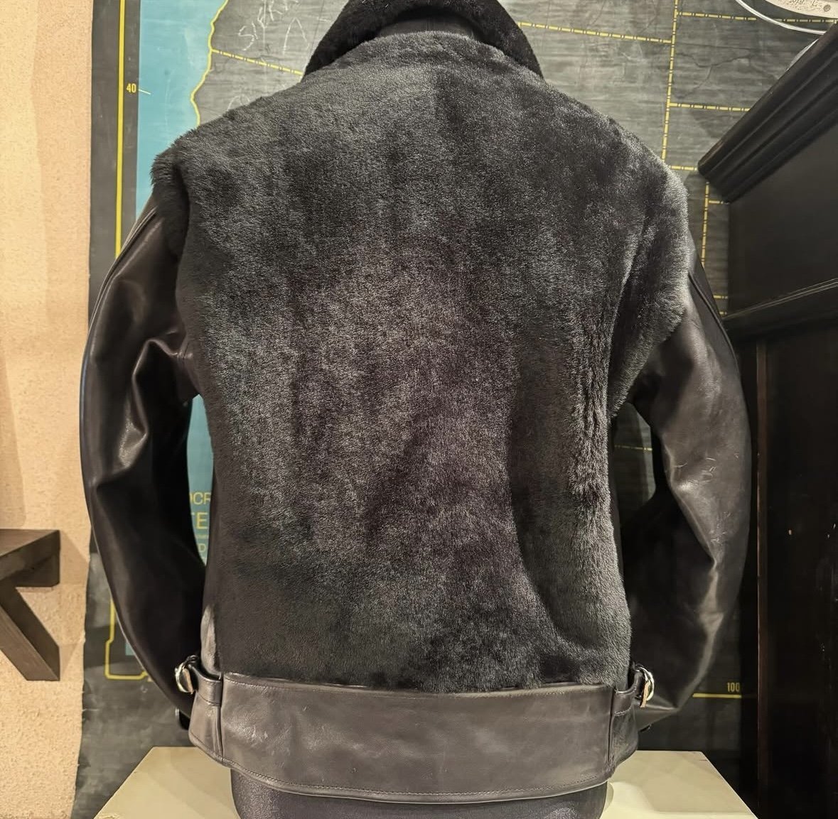 | コンディション | 30’sのBlockBiltグリズリーレザージャケットを細部まで分析し再現した一着 30’s BlockBilt Grizzly Jacket LOT1736です。 やや長めの襟やショルダー部分のムートン切り替え袖口のアジャスターなどが目を引き、 ウエストベルトが付かないのがBlockBiltの特徴的なディテール。 マリアム社のフルベジタブルタンニングの馬革とシープムートンを選定しパラフィンとカゼインを用い仕上げを施し 縫製、付属等一切妥協する事なく徹底的に拘った渾身のグリズリージャケットです。 |