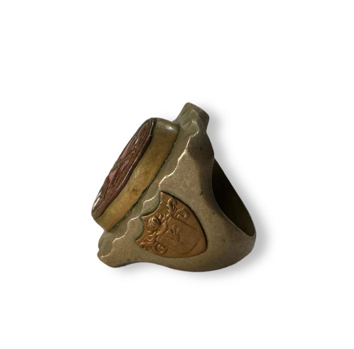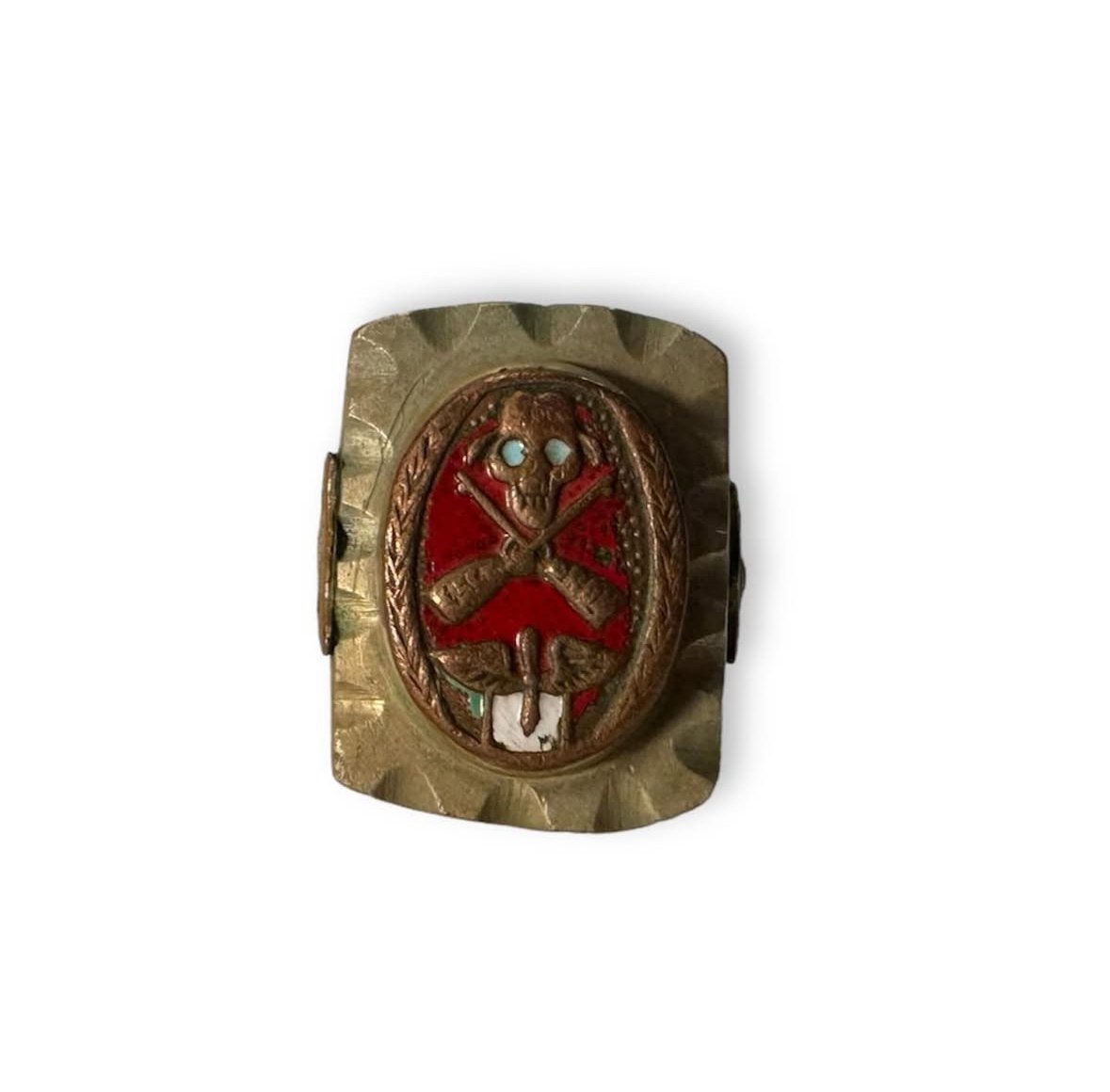 | コンディション | 通常のメキシカンリングではシルバーですが こちらはニッケル。 迫力のあるサイズ感でニッケルにしか出せない雰囲気。 スカルの下はクロスボーンではなく ピストルでバックは朱色。 人と被らない一点。 こちらの商品は古着商品のため多少の使用感はほとんどの商品に見られますのでご理解のほど宜しくお願いします。商品について気になる方はお店に問い合わせください。 |
