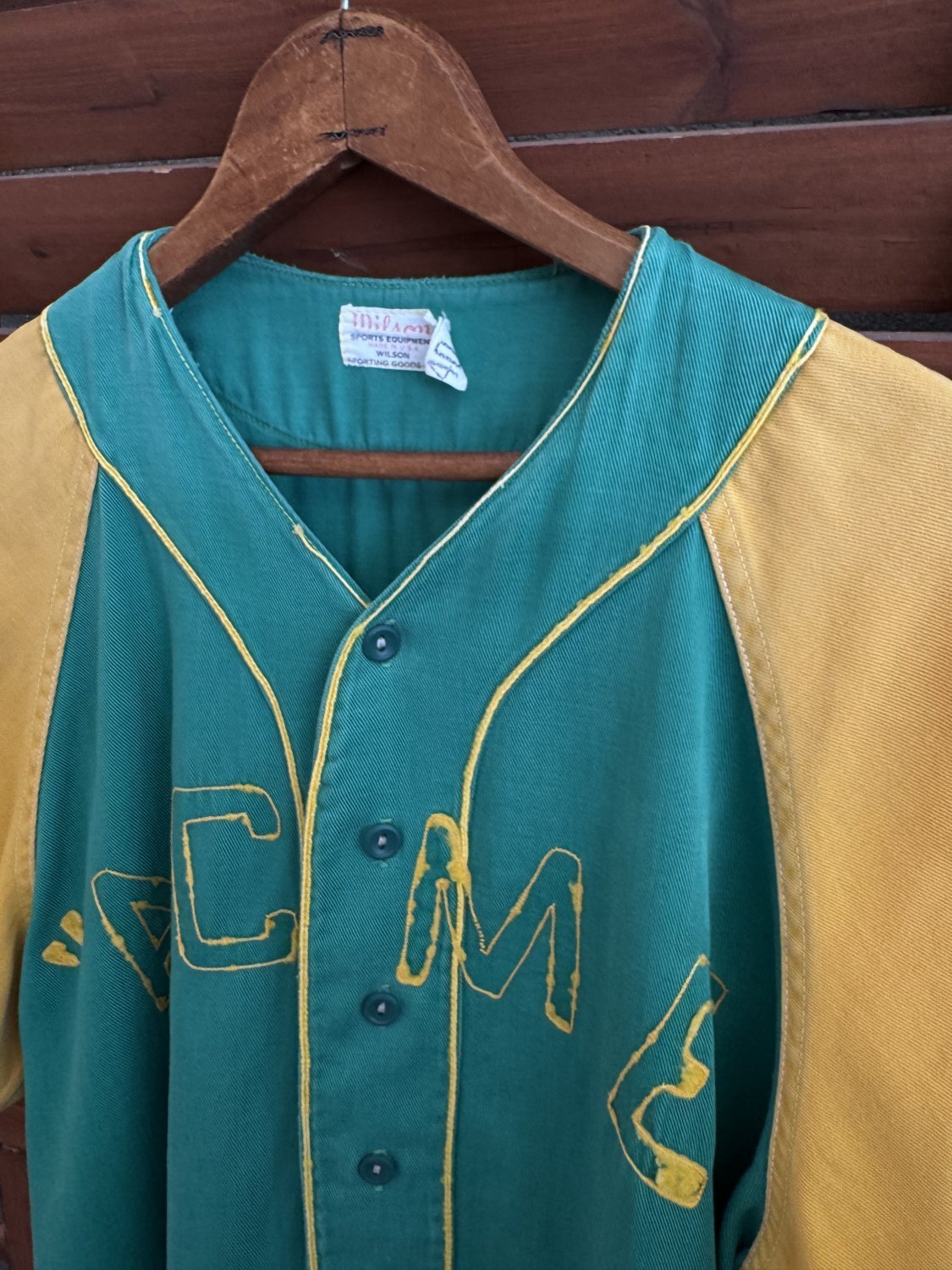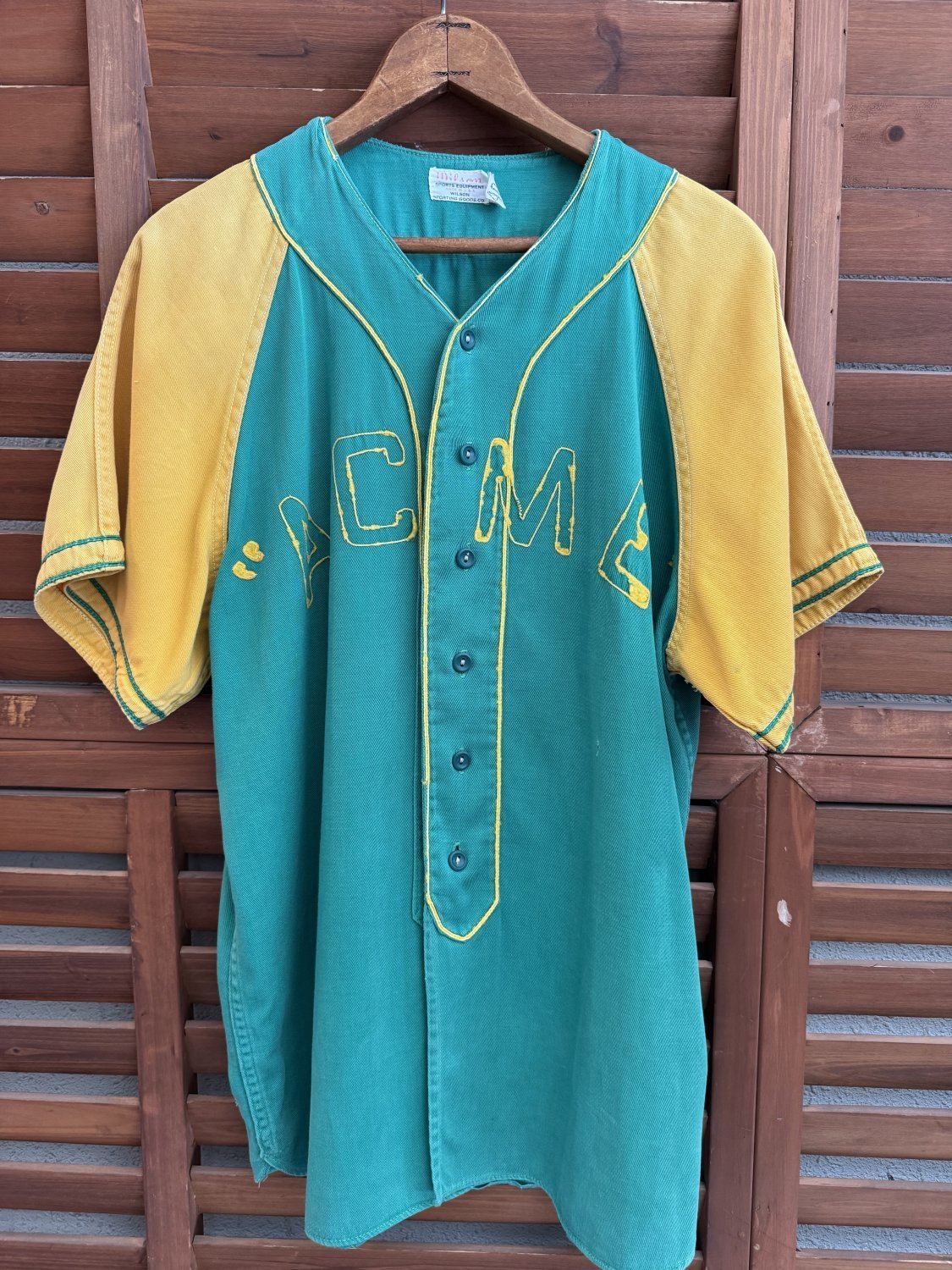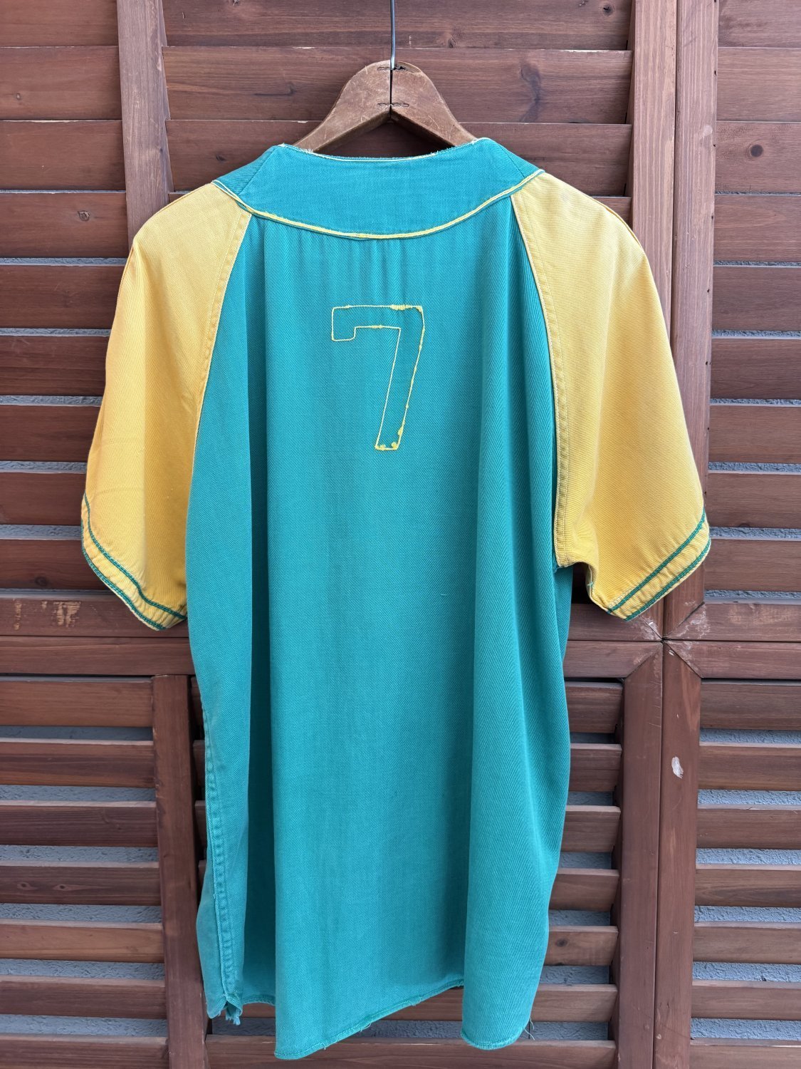 | コンディション | 50年代のコットンベースボールシャツです。 古いベースボールシャツはウール素材のものが多くありますがコットンのため着用もストレスなく来ていただけるかと思います。 カラーもなかなか見ない緑と黄もよいです。 こちらの商品は古着商品のため多少の使用感はほとんどの商品に見られますのでご理解のほど宜しくお願いします。商品について気になる方はお店に問い合わせください。 |